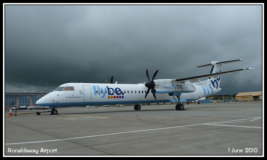 FlyBe Q400 G-JECE 'The Wembley Grecians' parked on stand 10