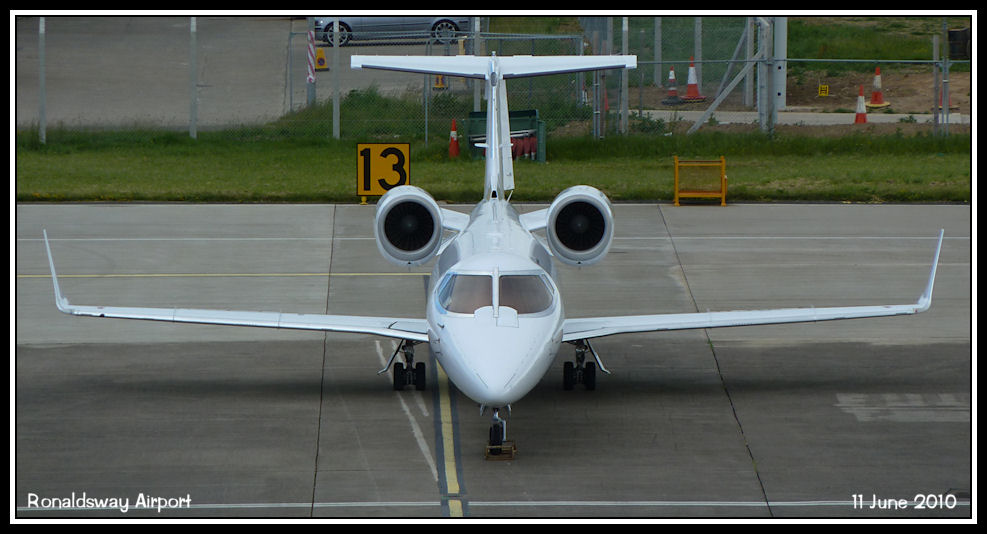 Head on view of Learjet 60 D-CSIX from the control tower balcony