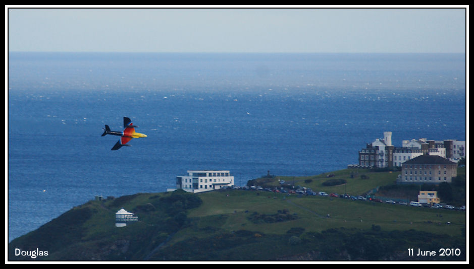 Hawker Hunter G-PSST over Douglas Head, picture take from Birch Hill