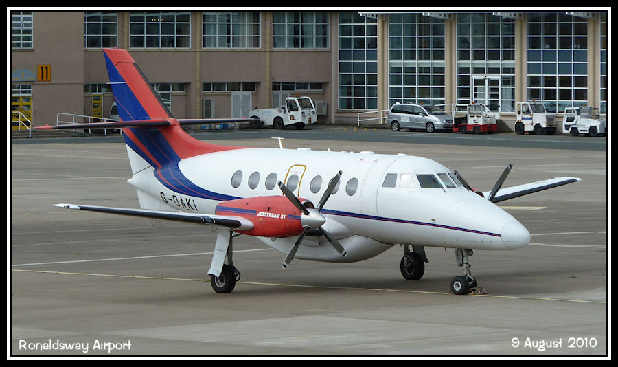 Jetstream 31 G-OAKI parked on the east apron between services for Manx2