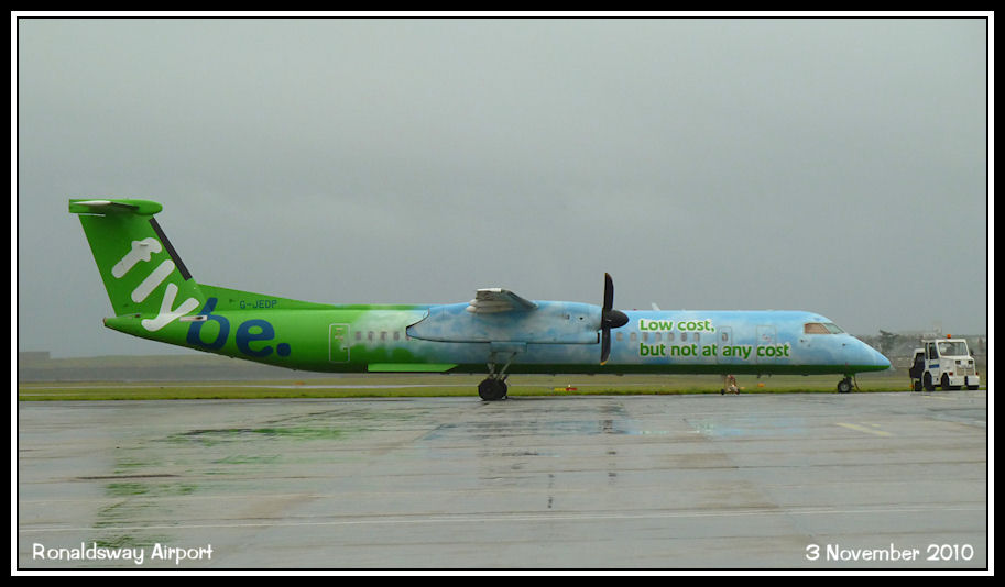 FlyBe 'green' Dash8-Q400 G-JEDP, currently one of their four Ronaldsway based aircraft