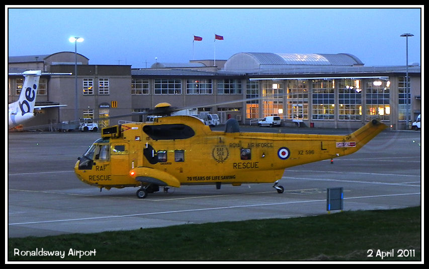 RAF Sea King XZ596 taxies onto stand for a rotors running refuel before departing back to Valley