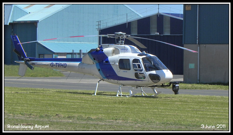 TT film helicopter, Arena Aviation Twin Squirrel G-TVHD parked by the control tower