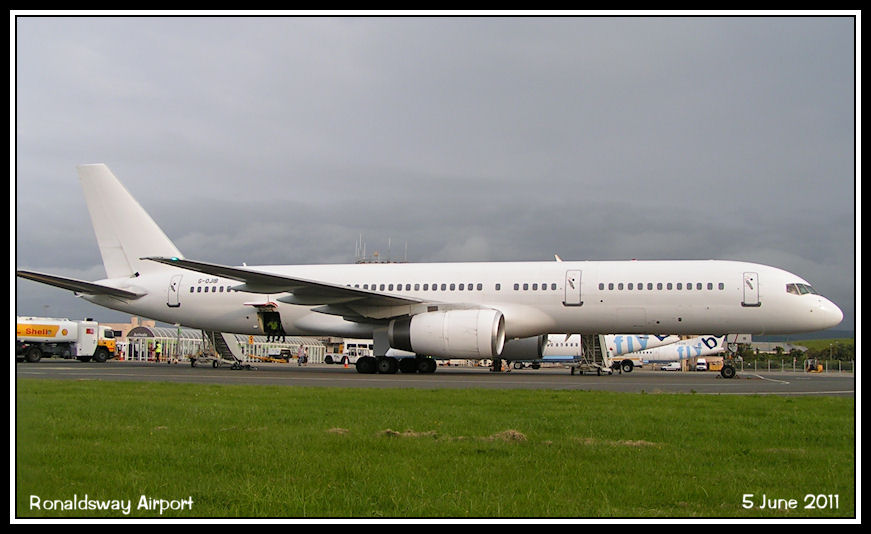 Astreas Boeing 757 G-OJIB, arriving at 05:45 to operate a charter to Ibiza for Thomas Cook