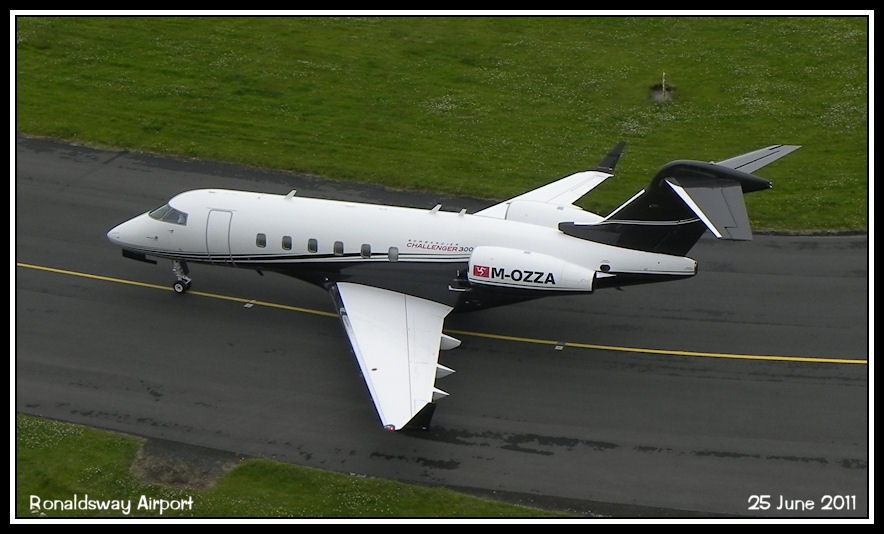 Bombardier Challenger 300 M-OZZA passes below the control tower