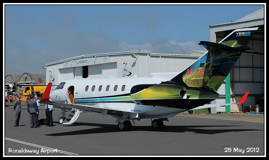Colourful Hawker 800XPi M-YCEF parked in Area Hotel