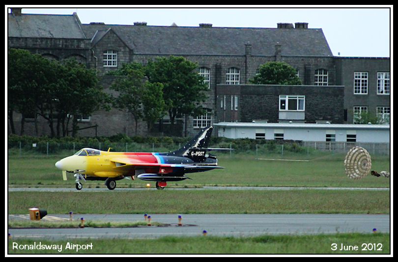 Hawker Hunter G-PSST streams its shute after landing on runway 08