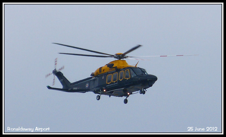 RAF Valley based Search & Rescue training AW139 ZR283 passes overhead after a practice approach