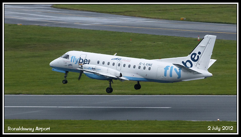 Loganair Saab 340 G-LGNE lifts off from runway 08, heading back to Scotland