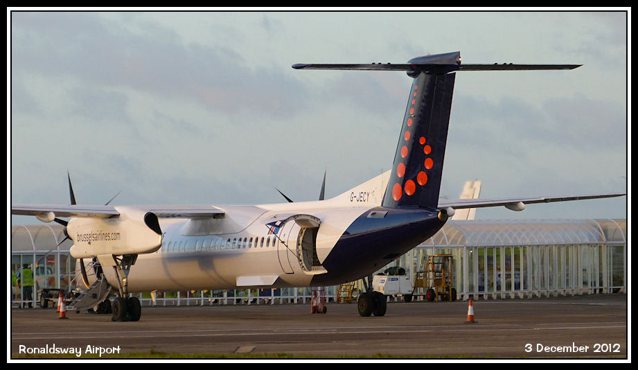 Stranger in the FlyBe fleet! Brussels Airlines liveried Dash8-Q400 G-JECY on a Birmingham service
