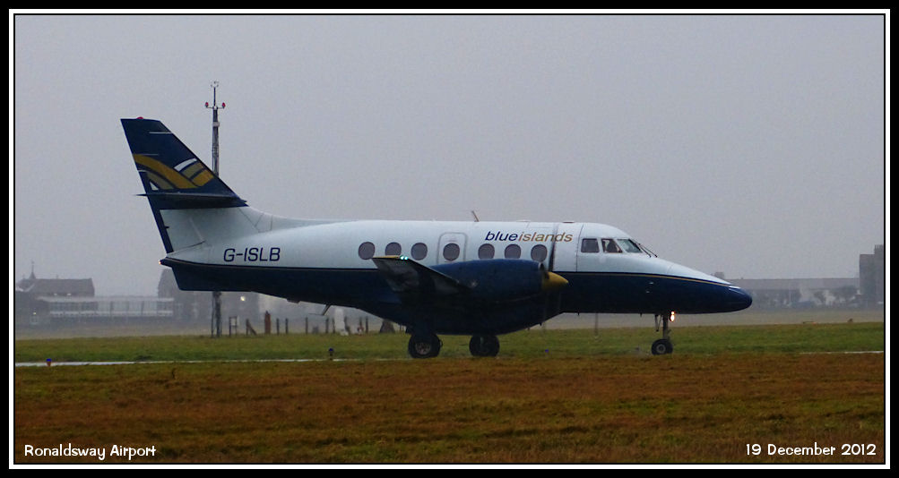 Blue Islands Jetstream 32 G-ISLB after arriving from Guernsey on a wet and windy day