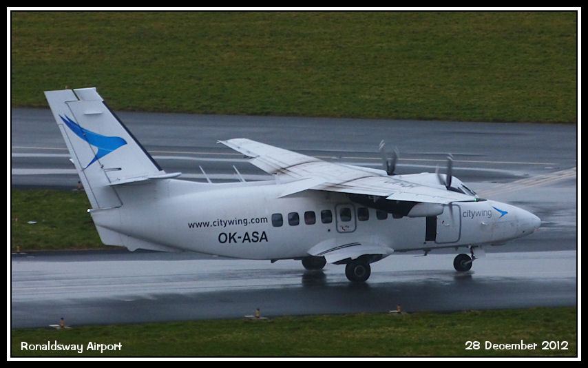 Sporting new Citywing markings, Van Air Let 410 OK-ASA has just arrived from Blackpool operating a Manx2.com service