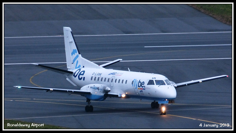 Loganair Saab 340 G-LGNN vacates runway 26 before taxiing to the east apron
