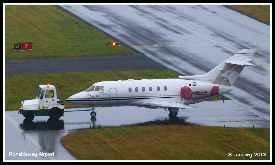 After her recent exploits on the grass, Hawker 750 M-OLLE is towed to the EAM hanger for attention