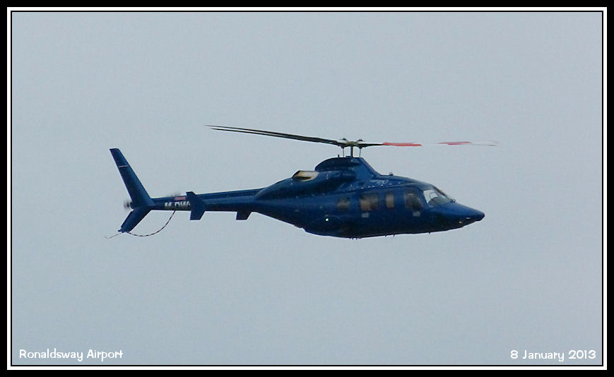 Bell 430 M-DWSF passes over the airfield after an ILS approach, heading for a landing site at Port Erin