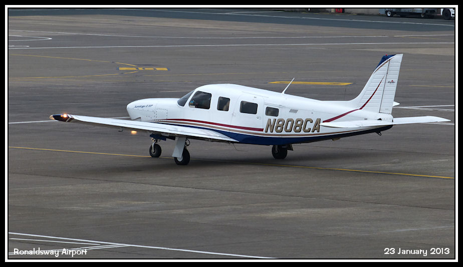 Piper Saratoga II N808CA taxies after a brief stop