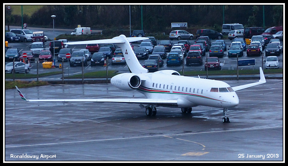 Bombardier Global 5000 M-SAID after arriving earlier from Montreal, Canada