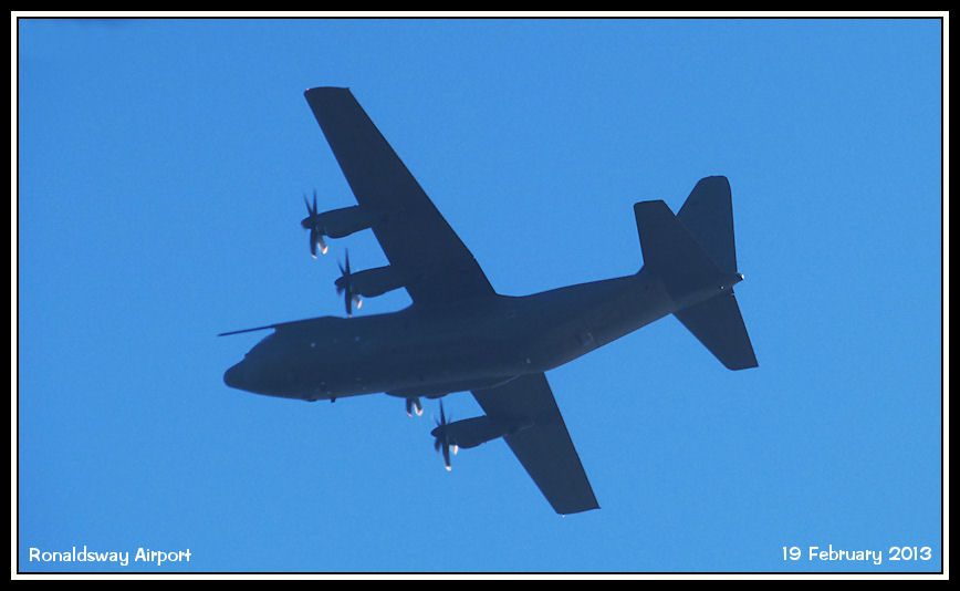 RAF Hercules C4 ZH887 'Ascot 321' passes over the airfield after a visual approach to runway 08
