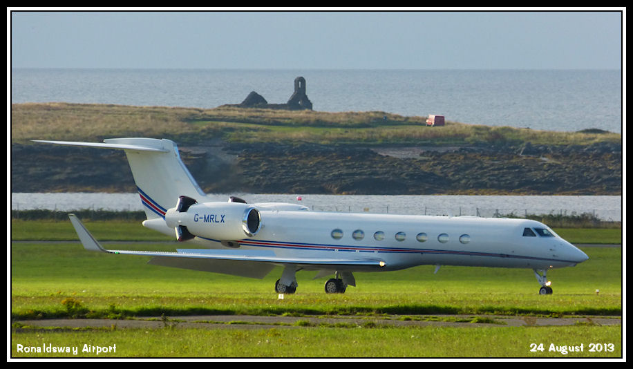 Arriving from Savannah, USA, Gulfstream G550 N550DV (on flight plan) or G-MRLX (on aircraft)