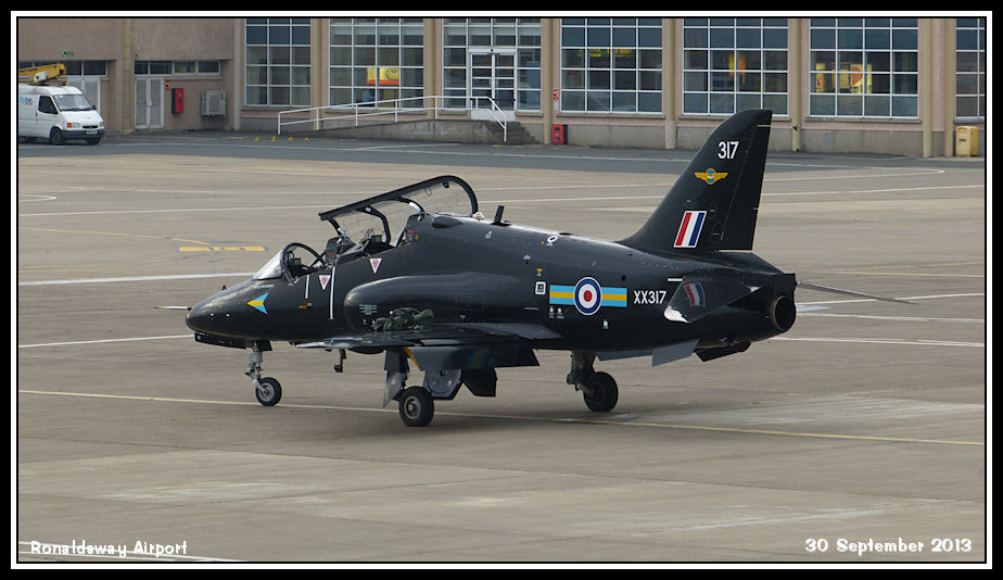 RAF 208 Sqn Hawk T1A XX317 after diverting into Ronaldsway on a 'Pan' call with a possible birdstrike