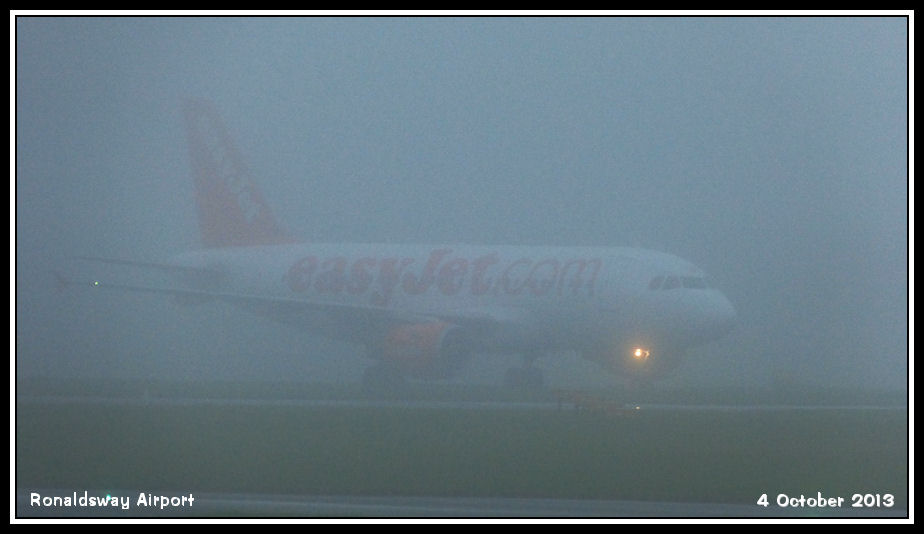 It was a bit foggy at times this morning! - EasyJet Airbus A319 G-EZBC taxies in after arriving from Liverpool