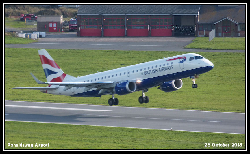 BA CityFlyer ERJ190 G-LCYR just airborne and heading back to London City Airport