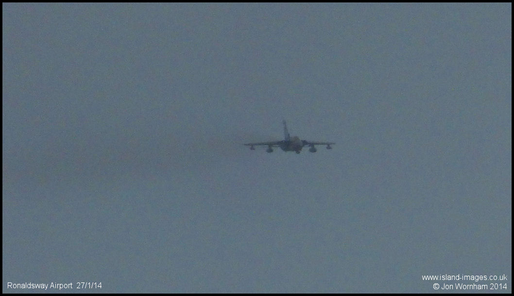 An RAF Tornado GR4 approaches Ronaldsway with gear up