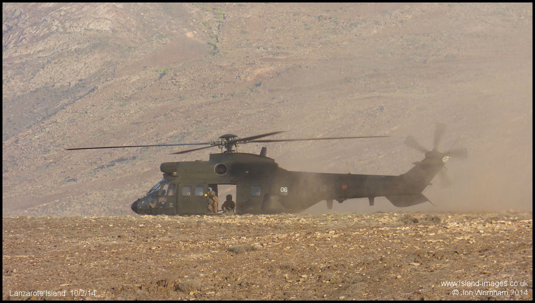 Spanish Army AS332 Super Puma 'ET-506' kicks up the dust at the landing site