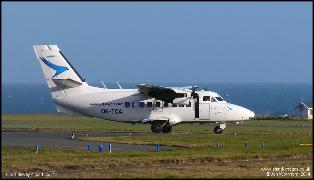 Van Air Europe Let410 OK-TCA rolls on Ronaldsway's runway 21 operating a Citywing flight