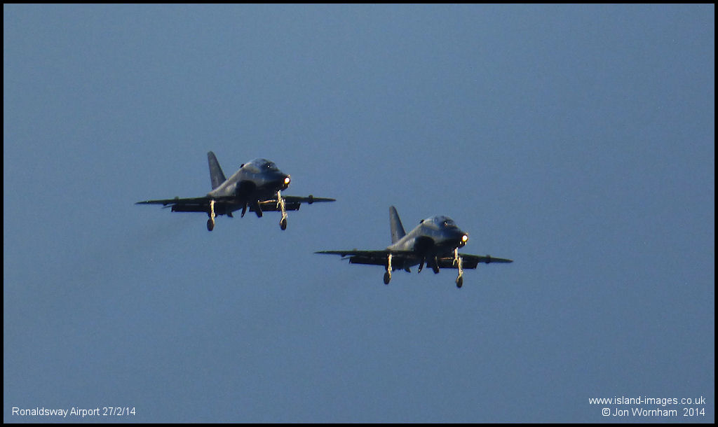 'Obie' flight, two RAF Hawk T1s from 208(R) Sqn on a pairs ILS approach to runway 26 at Ronaldsway