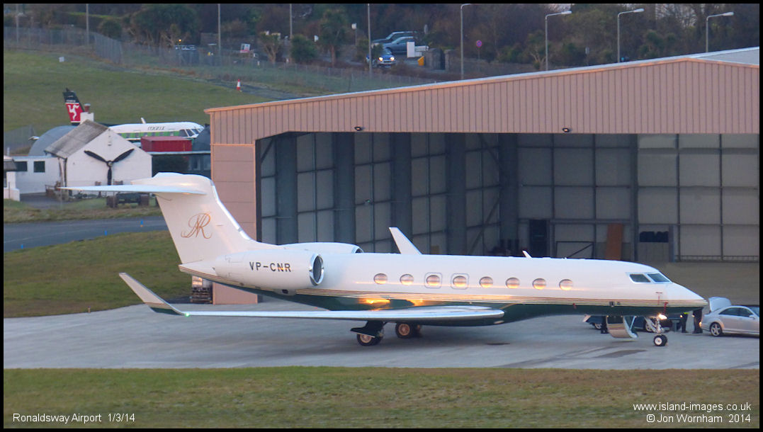 Gulfstream G650 VP-CNR that had flown overnight direct from Las Vegas USA to Ronaldsway