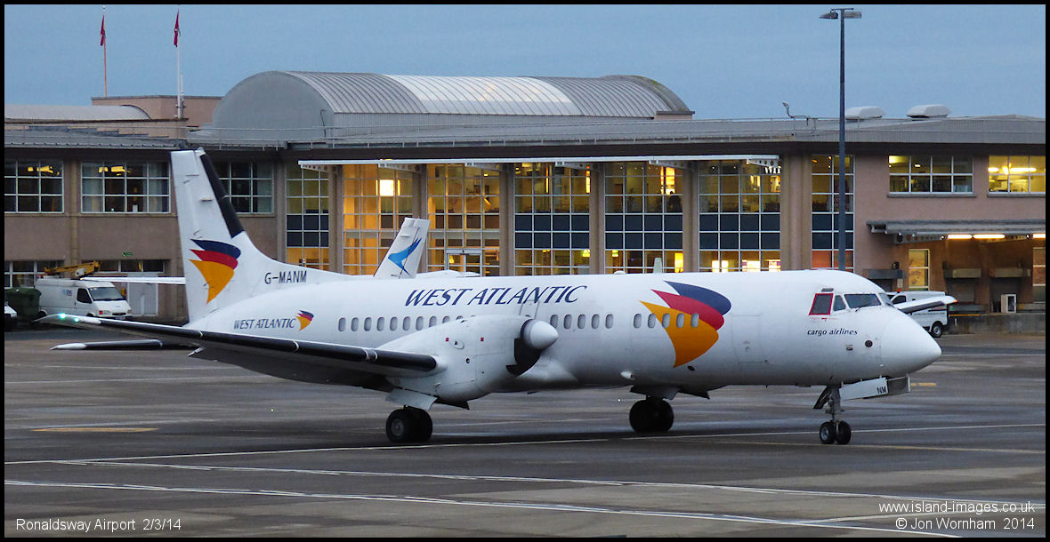 The island's Sunday newspapers arrive at Ronaldsway on Atlantic Airlies ATP G-MANM, once G-OATP with Manx Airlines