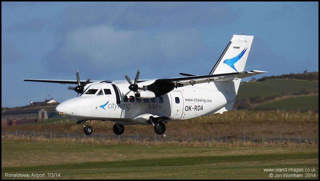 Operating for Citywing, Van Air Let 410 OK-RDA about to touch down on runway 26 at Ronaldsway