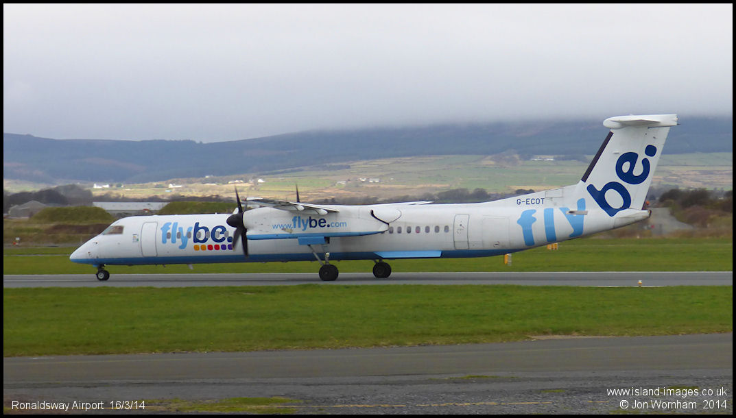 FlyBe Dash8-Q400 G-ECOT rolling on runway 26 at Ronaldsway