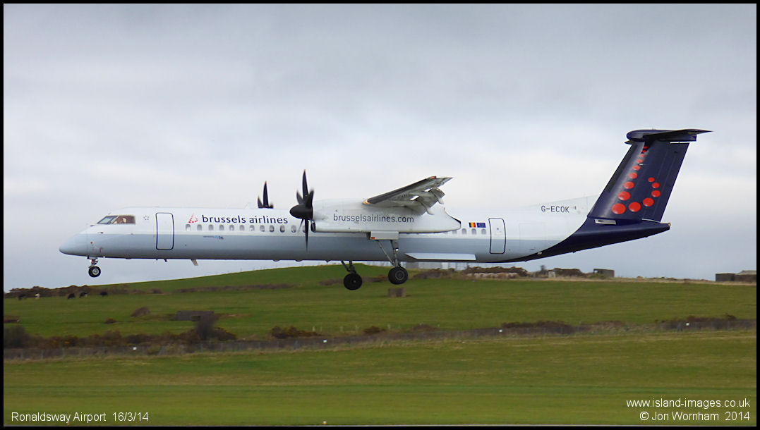 Flown by Capt. Steve Bridson & F/O Tara McKernan, G-OK about to touch down on runway 26 at Ronaldsway