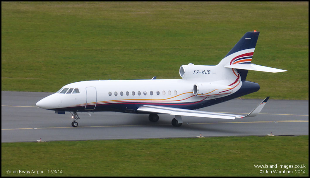 Falcon 900 T7-MJB taxies for departure at Ronaldsway