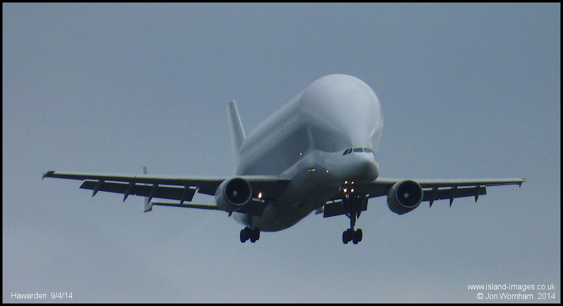 Airbus Beluga F-GSTD on an ILS approach to runway 22 at Hawarden