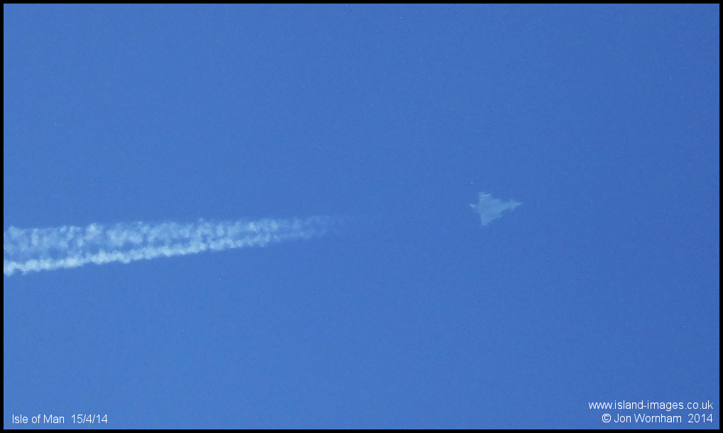 The first of 3 Typhoons that passed over the IOM on a flight test from Warton at 40,000ft + heading northwest