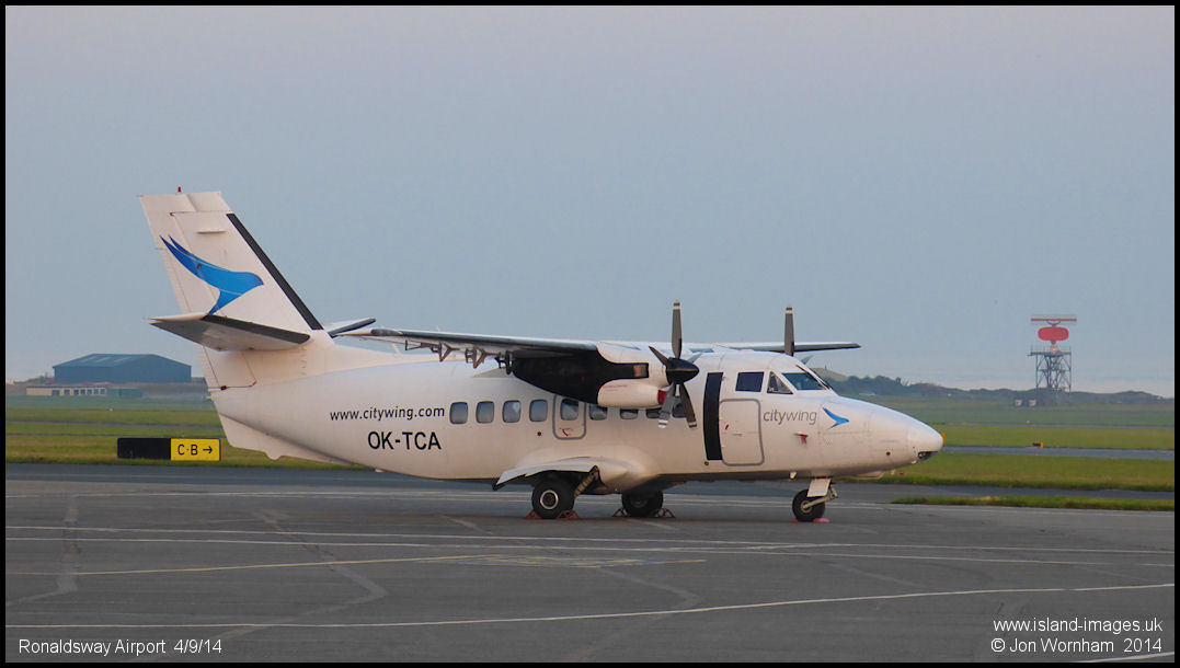 Having finished its Citywing duties for the day, Let 410 OK-TCA is parked on the west apron at Ronaldsway