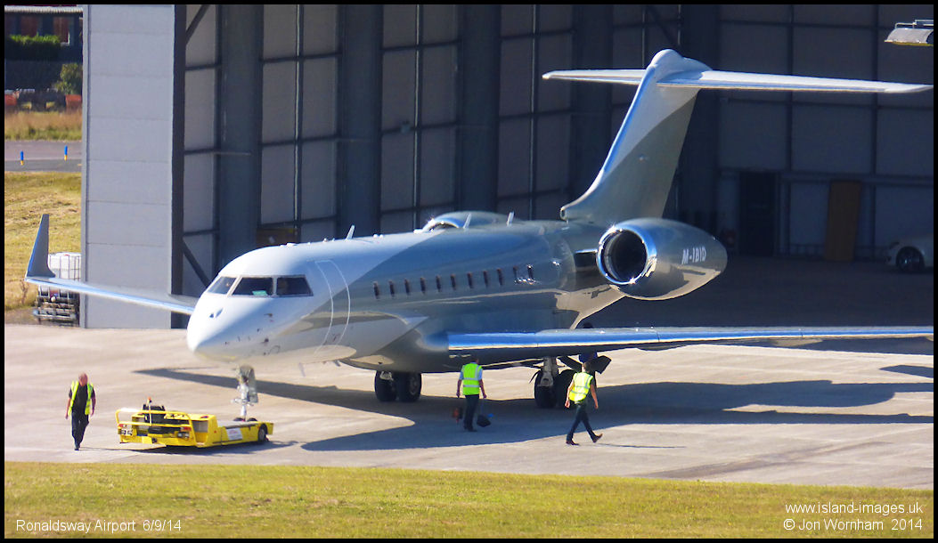 Global 5000 M-IBID parked on the Private Jet Company's apron at Ronaldsway