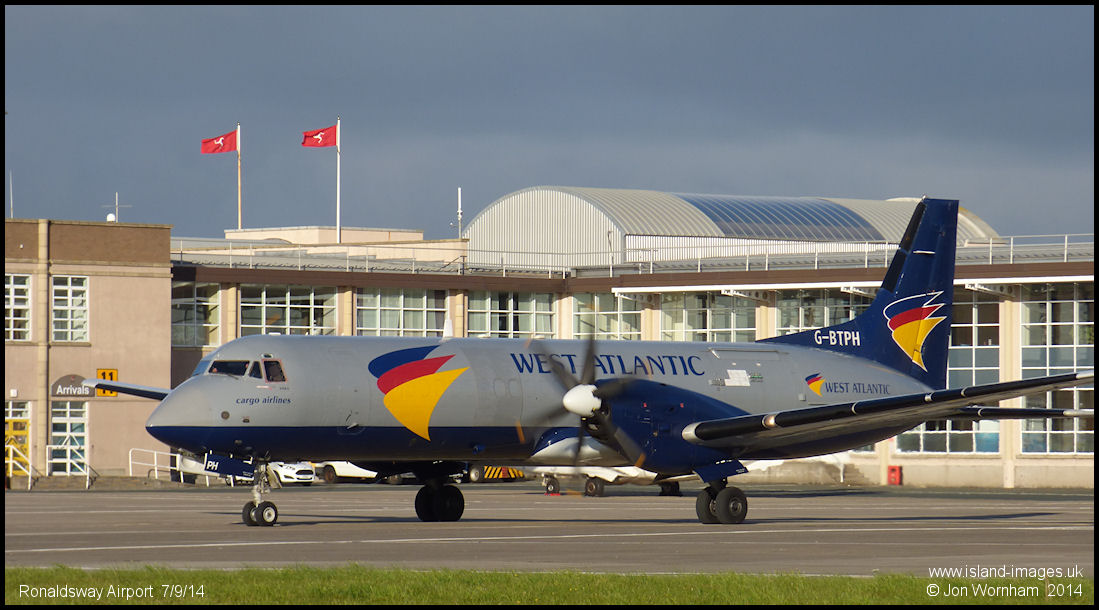 Atlantic Airlines ATP-F G-BTPH taxies for departure after delivering the island's Sunday newspapers