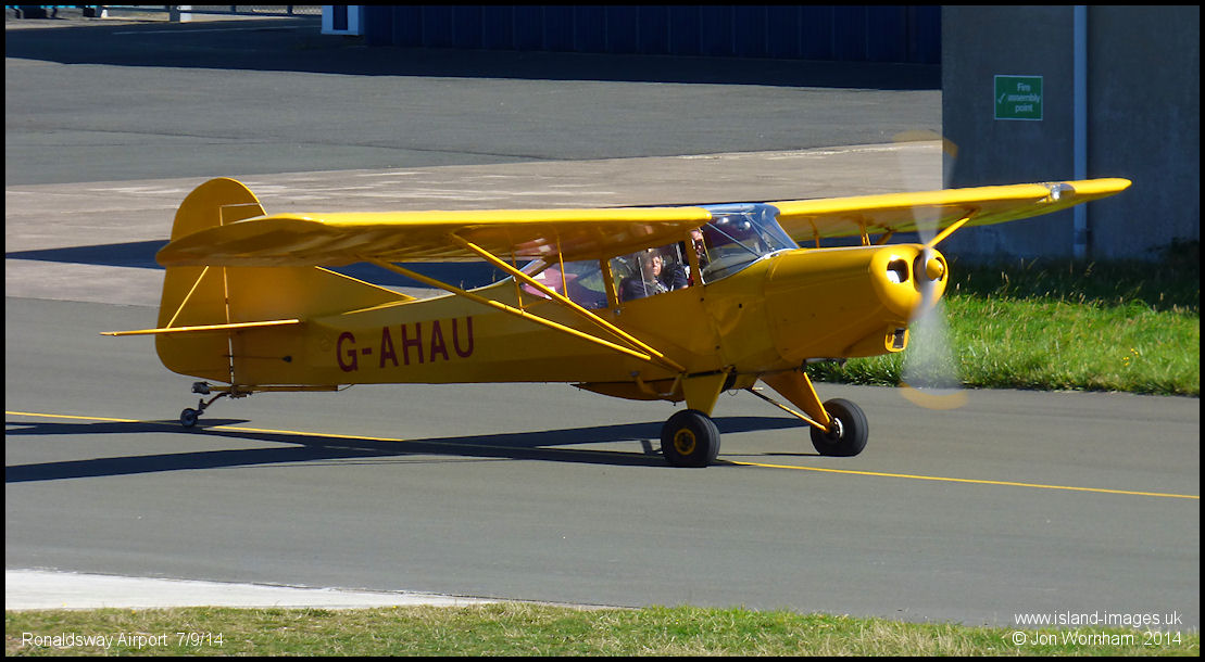 Auster Autocrat G-AHAU taxies for departure after arriving at Ronaldsway from Andreas for fuel