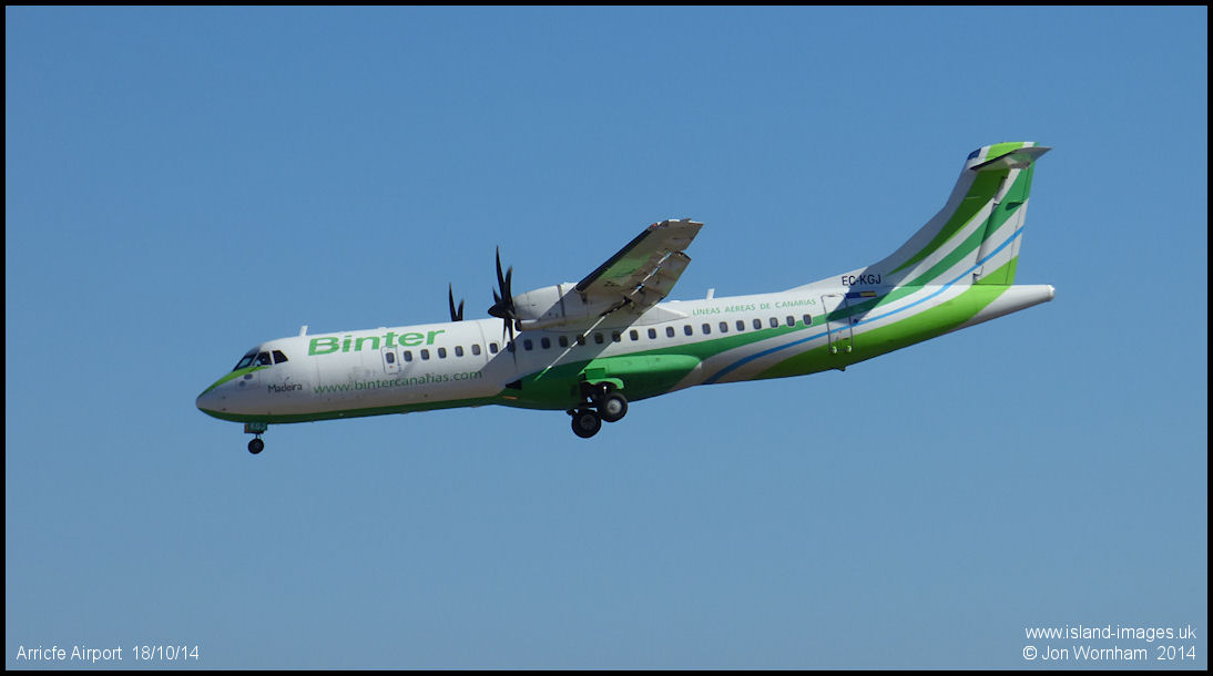 Binter ATR72-500 EC-KGJ on short final for runway 03 at Arrecife