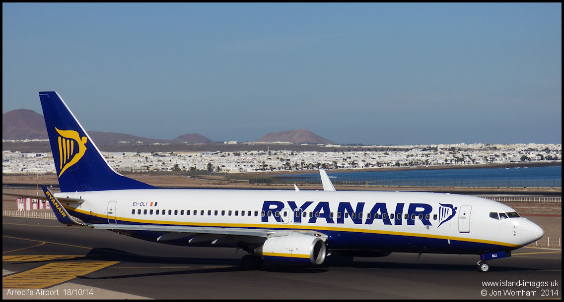 Ryanair Boeing 737-800 EI-DLI at the holding point for runway 03 at Arrecife