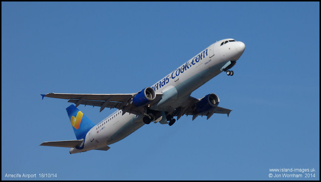 Thomas Cook Airbus A321 G-OMYJ departs from runway 21 at Arrecife