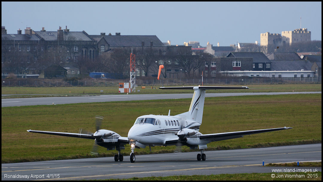 Super King Air G-CIFE taxies for departure from Ronaldsway runway 26