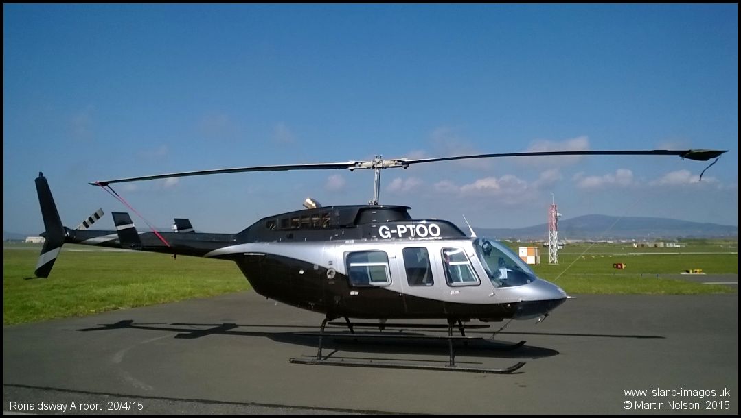 Bell 206 Longranger IV G-PTOO parked in Area Victor at Ronaldsway