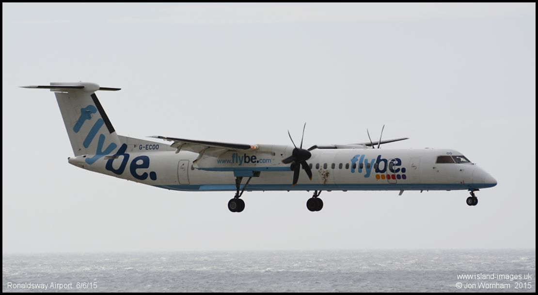 FlyBe Dash8-Q400 G-ECOO on final for runway 26, arriving from London Stansted Airport