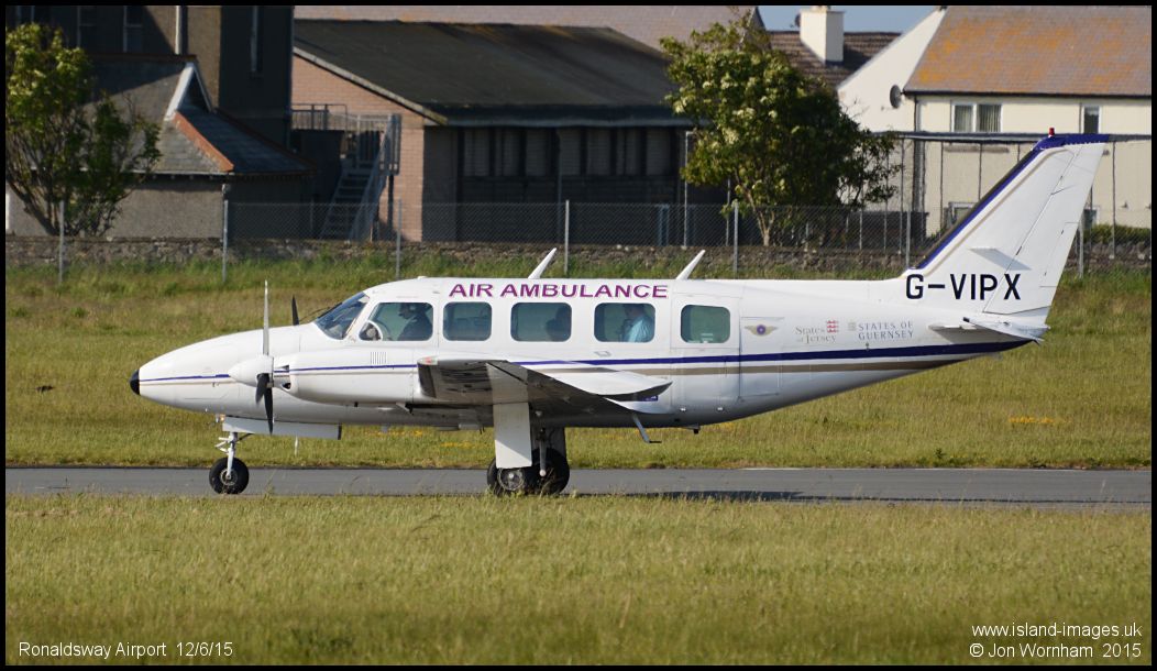 Air Ambulance Piper Navajo Chieftain G-VIPX about to depart from runway 08