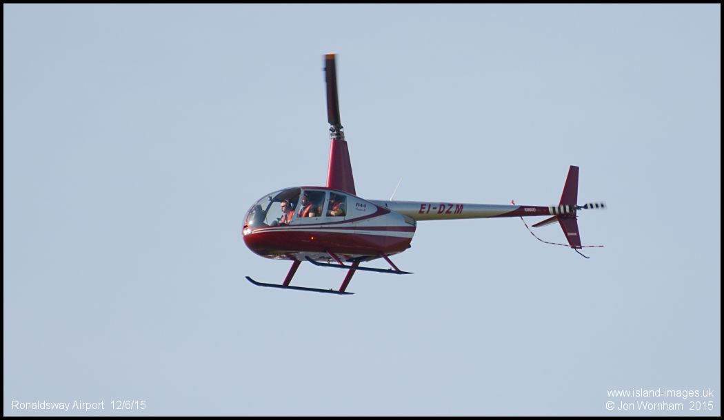 Robinson R44 Raven II EI-DZM crosses over to land on Ronaldway's south side parking